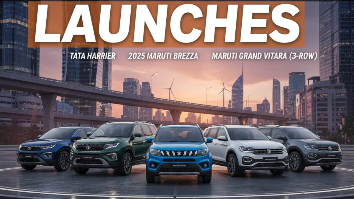 15 नवंबर 2025 ऑटो मार्केट के लिए बड़ा दिन है। सस्ती से लेकर प्रीमियम, city commuters से लेकर families और luxury buyers तक, हर किसी के लिए कुछ है। टाटा हैरियर और सफारी से लेकर मारुति ब्रेज़ा और ग्रैंड विटारा, और फॉक्सवैगन टेरॉन तक, हर कार के features, mileage और service network buyers के लिए अहम होंगे। मार्केट में launch से पहले buyers को टेस्ट ड्राइव, फीचर्स और सर्विस नेटवर्क पर ध्यान देना चाहिए। छोटे glitches और real-world performance ही buyers का भरोसा बनाते हैं।