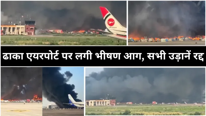 हजरत शाहजलाल एयरपोर्ट के नए टर्मिनल में लगी भीषण आग। · धुएं से परिसर भरा, सभी उड़ानें तुरंत रद्द की गईं। · यात्रियों में दहशत और भगदड़, सुरक्षाकर्मियों ने सुरक्षित निकाला।