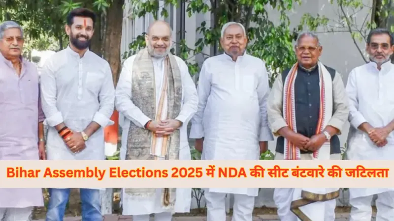 बिहार 2025 चुनाव के लिए NDA में सीट बंटवारे को लेकर उलझन बढ़ रही है। · उपेंद्र कुशवाहा, जीतन राम मांझी और चिराग पासवान जैसे तीन सहयोगी दल अधिक सीटों की दावेदारी कर रहे हैं। · यह सीट बंटवारे का मुद्दा NDA के भीतर राजनीतिक हलचल मचा रहा है और गठबंधन के लिए चुनौती बना हुआ है।