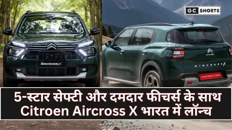 सिट्रोएन ने अपनी नई SUV एयरक्रॉस X लॉन्च की, जो क्रेटा और विटारा को टक्कर देगी। · इस SUV को भारत NCAP से 5-स्टार सुरक्षा रेटिंग मिली है। · यह आकर्षक नए डिज़ाइन, डीप फॉरेस्ट ग्रीन रंग और 40 से अधिक सुरक्षा फीचर्स के साथ आती है।