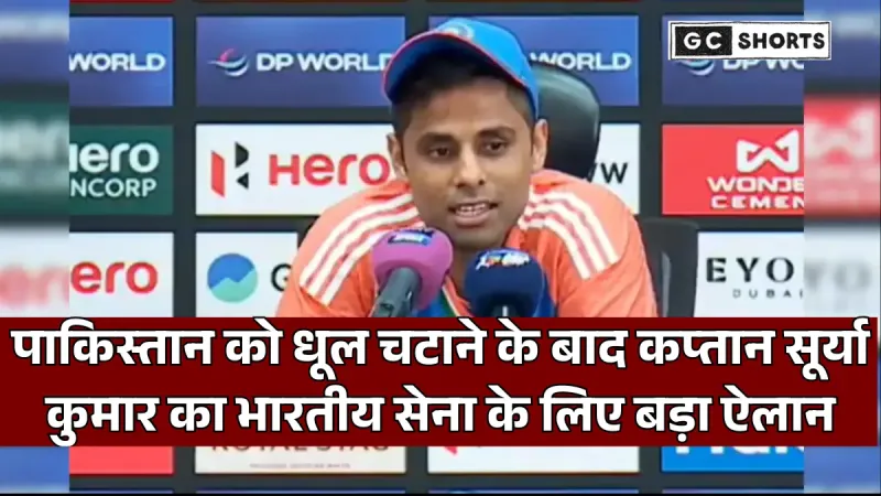 भारत ने रोमांचक फाइनल में पाकिस्तान को हराकर एशिया कप 2025 का खिताब जीता। · टी20 कप्तान सूर्यकुमार यादव ने टूर्नामेंट की अपनी पूरी फीस भारतीय सेना को दान करने की घोषणा की। · सूर्यकुमार ने सेना को देश का असली सितारा बताया; उनके इस दरियादिली भरे कदम की खूब सराहना हो रही है।